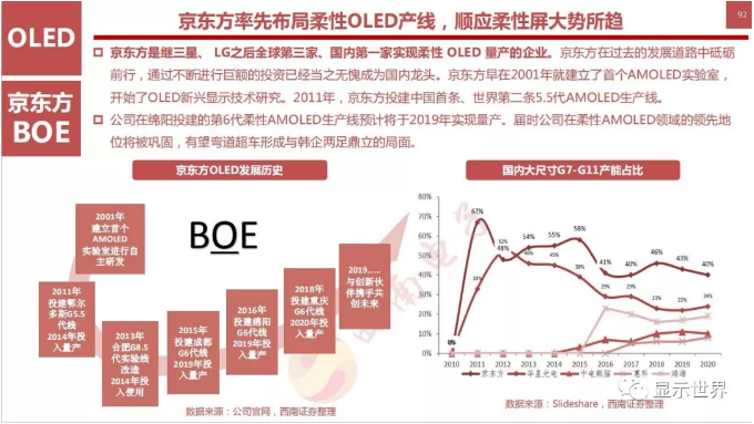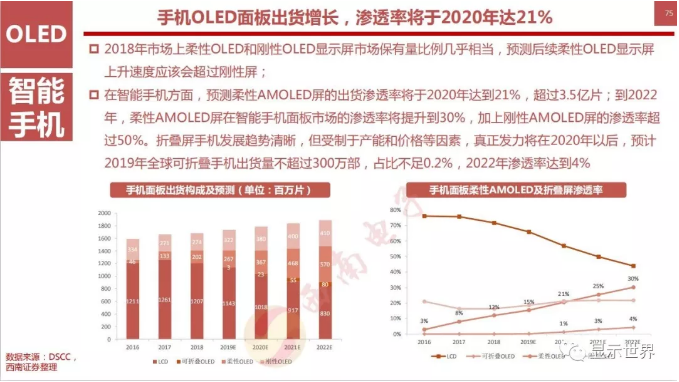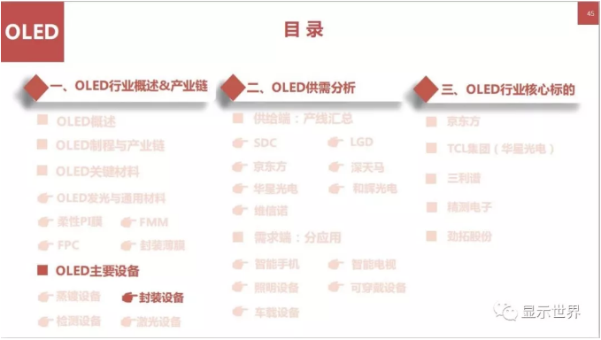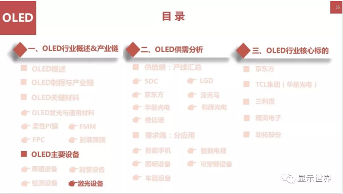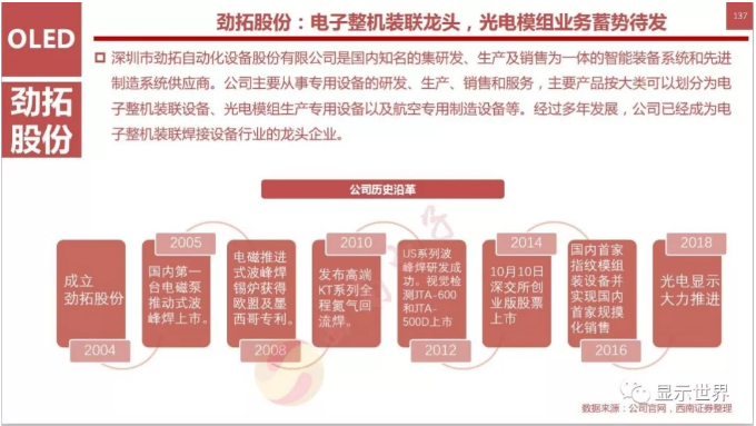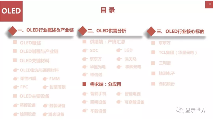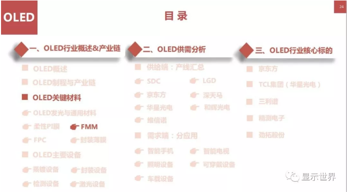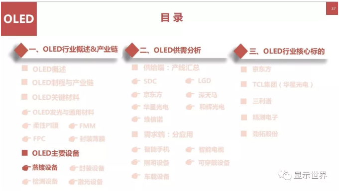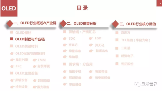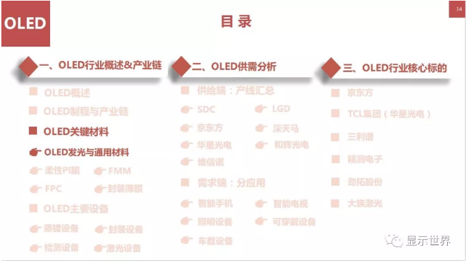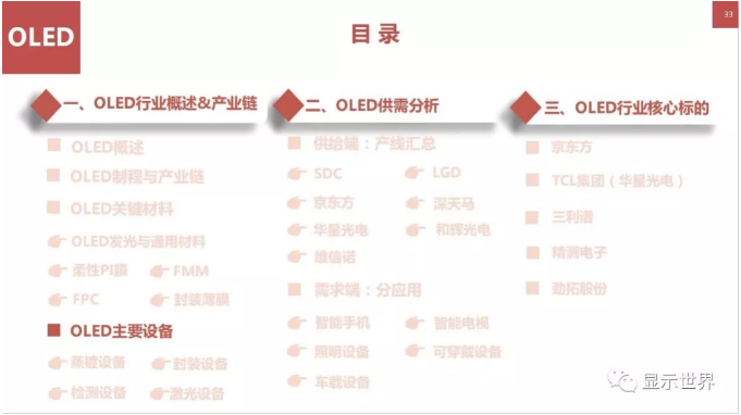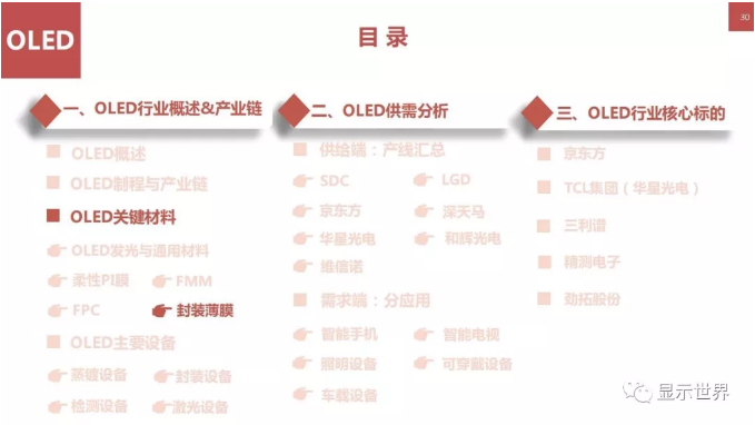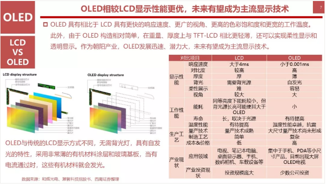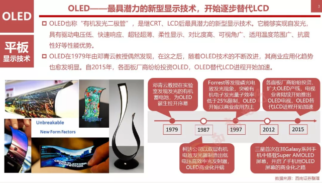 OLED柔性屏行业框架深度报告OLED柔性屏行业框架深度报告发布时间:2019-08-06点击量:422作者:深圳市真空技术行业协会 屏幕是消费电子创新之母,具备三大特征: 1、屏幕是旗舰机最贵的部件之一 2、屏幕是手机形态的终极决定因素 3、屏幕是交互的枢纽,是内容的承载 手机形态从2001年诺基亚直板机到现在已经18年未变,而OLED将是手机形态变化和智能手机下一轮创新的终极决定因素。 OLED将从根本是改变未来智能设备的交互形态: 1、屏幕将成为交互创新的母版(屏下指纹、屏下摄像头、屏幕自发声) 2、屏幕将成为手机里最贵的部件(OLED成本80~110美金,相当于SoC+存储芯片之和) 3、OLED屏幕是中国目前唯一一个通过自主研发弯道超车,在全球具备领导地位的主流半导体产业。 我们认为以京东方为首(TCL-华星光电、维信诺、天马)的OLED产业链将迎来新一轮产业红利期。 以下是我们外发OLED行业框架深度报告 来源:显示世界 免责声明:本文为网络摘录或转载,版权归原作者所有,内容为原作者个人观点,并不代表本网站赞同其观点和对其真实性负责。如涉及作品版权问题,请与我们联系(邮箱:xhvacuum@163.com),我们将在第一时间删除内容! |